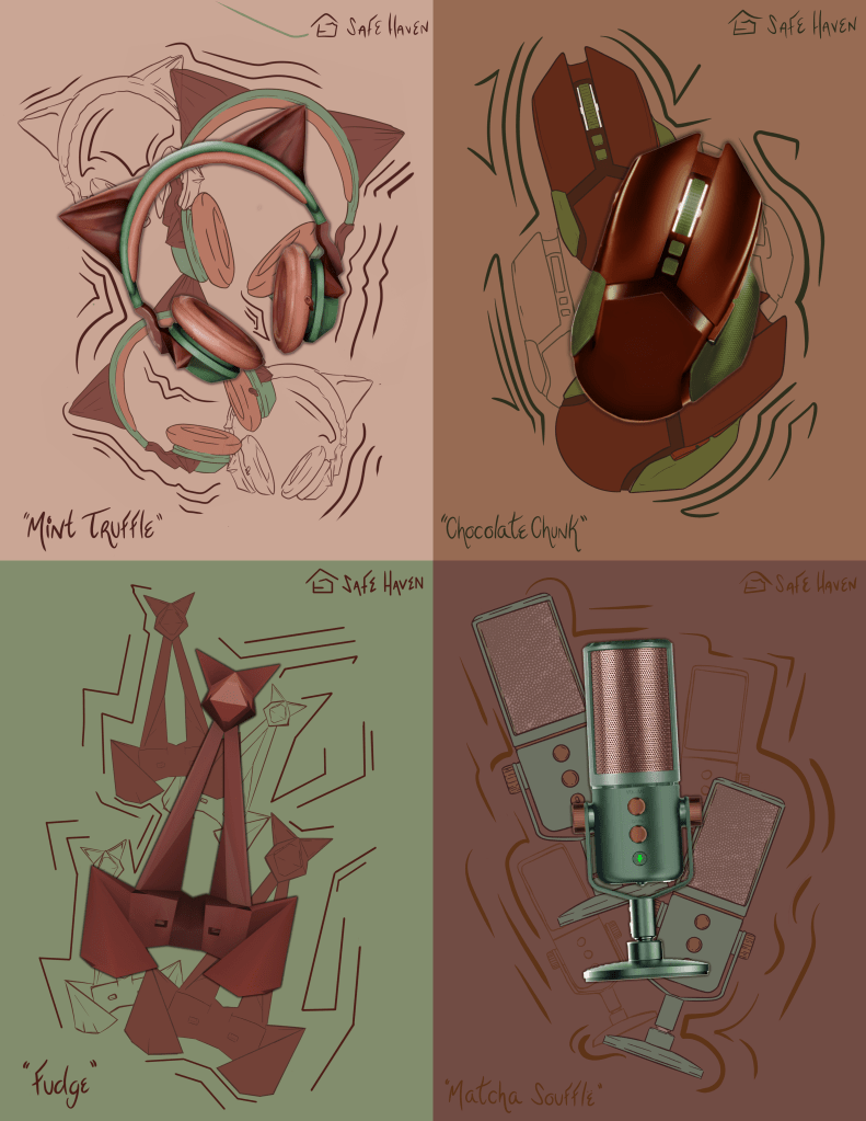 the inspiration was a actually from toy and stuffed animal brand, making it very “cute” and flowy. This fed into something I wanted, not overtly feminine but attached to brands and ideas that doesn’t maintain a gender connection