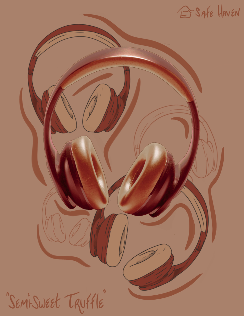 In order to create an effective and individual set of headphones and stand I needed to develop a new skill. I picked up the program Blender, that way my sketch can fully become by reality. This mean the stand and headphones are fully my own design with plenty of details not seen in the advertisements.