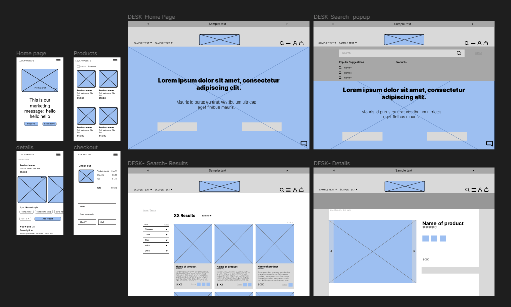 After revisions to the prior wireframes I created wireframes in Figma to further finetune structures and have an easier visualization.